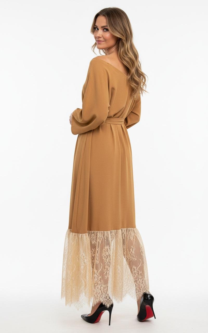 Kleita ar šķēļumu kas izceļ kāju, kleitai ir kabatas